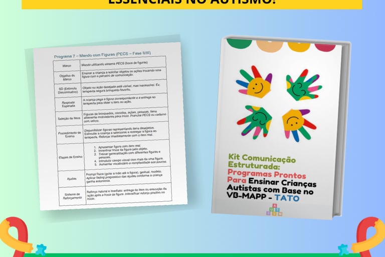 ✅ Kit Comunicação Estruturada: Programas Prontos para Ensinar Crianças Autistas com Base no VB-MAPP - MANDO, OUVINTE, TATO, PERCEPÇÃO E IMITAÇÃO R$ 198